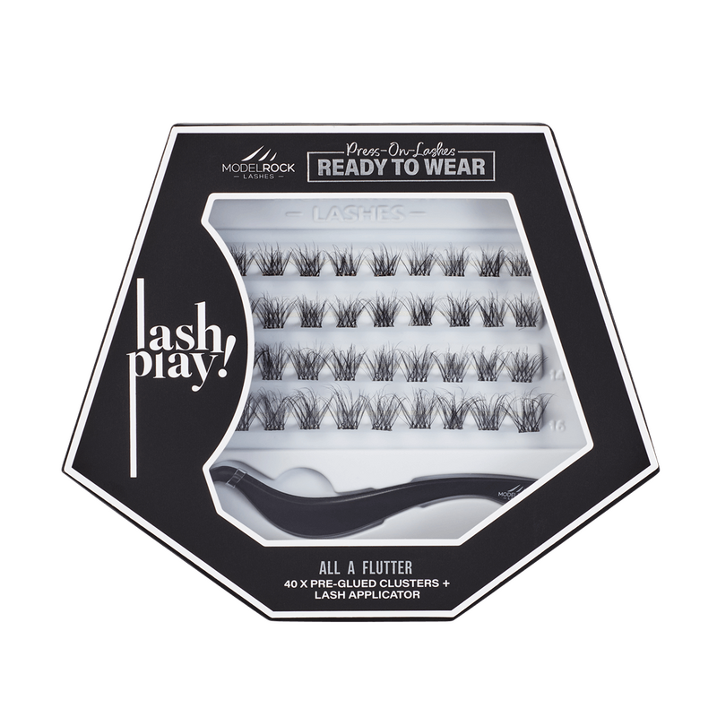 $15.00 AUDLASH PLAY Ready to Wear Pre-Glued Box Set - 'ALL A FLUTTER' - 40 x Cluster + Lash Applicator - Mixed Lengths