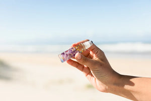 Amethyst infused oil with an Amethyst rollerball to promote sleep. This essential oil blend of Lavender, Bergamot, Mandarin, Lemon, Cedarwood & Chamomile will put your mind at ease and help relax your body.